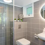Et separat toalett og dusj er inkludert på badet, og eiendommen har også utsikt over hagen.